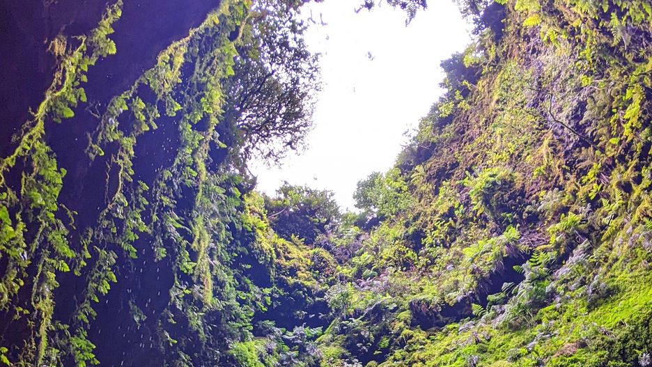 Otwór obrośnięty jest soczyście zieloną roślinnością, która ma tam idealne wprost warunki do rozwoju. Można tu zobaczyć ponad 80 gatunków endemicznych dla Azorów i Makaronezji. Są też żuki, pająki, a czasem pojawiają się i ptaki. Wszystko wygląda jak z bajki. Ale takiej totalnie nierealnej, dlatego widząc to wciąż nie wierzę. Aż zaniemówiłam z zachwytu.