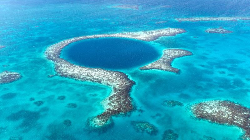 Mekką dla wielbicieli podwodnych przygód z całego świata jest też Great Blue Hole (Wielka Błękitna Dziura) - widoczna z kosmosu, wielka rozpadlina na Morzu Karaibskim, o średnicy ponad 300 i głębokości 124 m. Na skutek podniesienia się poziomu morza ta niegdyś jaskinia lądowa po zawaleniu się stropu została całkowicie zalana. Obecnie otaczają ją turkusowe wody i pierścień żywej rafy. 35 m p.p.m. znajduje się w niej sala z wielkimi stalaktytami. Całodniowa wycieczka do Great Blue Hole trwa ok. 10 godz., a ceny zaczynają się od ok. 200 dolarów amerykańskich. Warto pamiętać, iż najlepszą porę na nurkowanie w tym rejonie stanowią miesiące od stycznia do maja. W okresie od czerwca do grudnia plany mogą nam pokrzyżować częste opady deszczu. Tę szczególną atrakcję Ameryki Środkowej eksperci umieszczają zawsze w pierwszej 10. najlepszych miejsc nurkowych na ziemi.