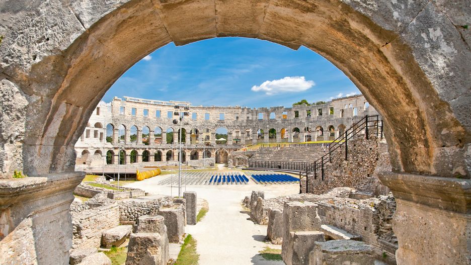 Pula znajduje się na siedmiu wzgórzach, nad zatoką w południowo-zachodniej części półwyspu Istria, w otoczeniu małych wysp. Ze względu na antyczną arenę nazywa się ją _ chorwackim Rzymem _. Amfiteatr został zbudowany przez cesarza Wespazjana. Mieścił 23 tys. osób, które przychodziły tu podziwiać walki gladiatorów oraz dzikich zwierząt. Miasto pełne jest atrakcji - do najważniejszych należą także rzymskie bramy, Łuk Sergiusza czy Świątynia Augusta.