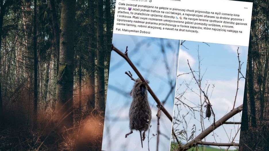 Nadleśnictwo Olesno zamieściło w swoich social mediach zaskakujące zdjęcia. Martwy gryzoń wiszący na gałęzi to jednak dla leśników nic dziwnego. To znak, że w okolicy znajduje się "ptasi Vlad Palownik" - jak dowcipnie określił jeden z komentujących internautów.