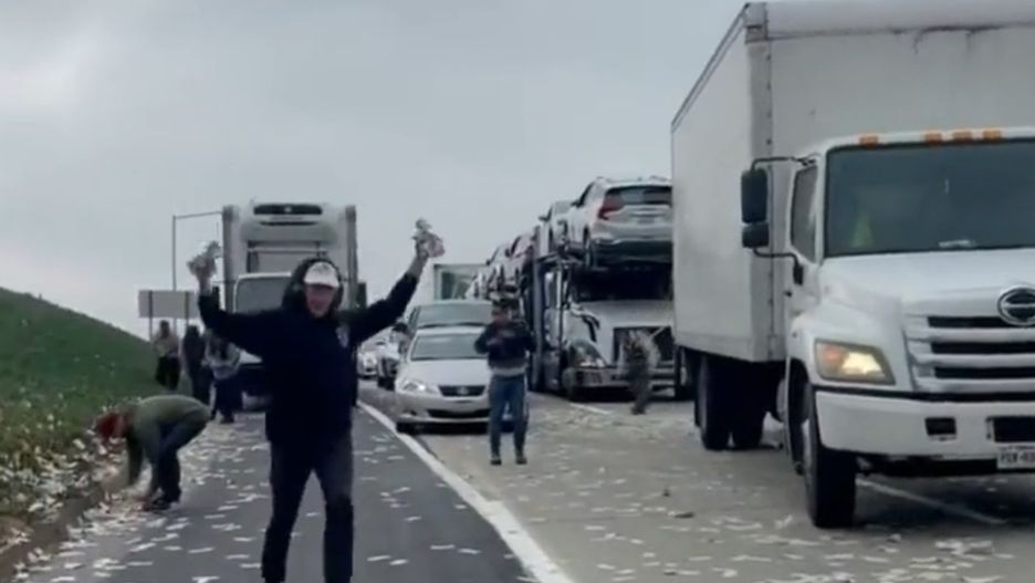 Sceny uwiecznione na nagraniu wyglądają jak z filmu. Ludzie zbierający banknoty, które wyleciały z jadącego autostradą auta, zablokowali drogę biegnącą wzdłuż zachodniego wybrzeża USA. Teraz policja apeluje do nich o zwrot gotówki.