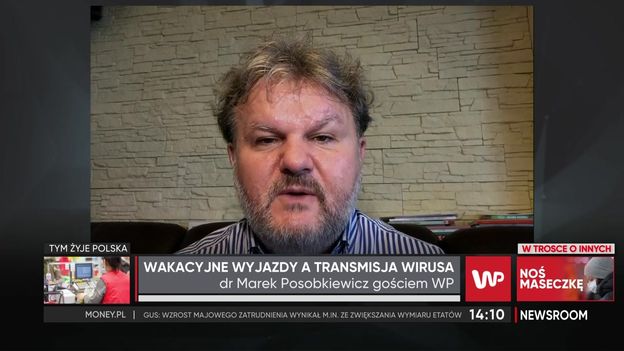 Gościem programu "Newsroom" WP był dr Marek Posobkiewicz, były Główny Inspektor Sanitarny. Mówił o wakacyjnych wyjazdach i pełzającej epidemii. Czy wakacyjne wyjazdy ściągną na nas więcej przypadków? - Pojawienie się nowych wariantów to kwestia czasu, przywiezienie nowego patogenu z drugiego końca świata nie będzie trudne. Po to są obostrzenia, żeby zatrzymać rozprzestrzenienie się wirusa – powiedział. I dodał, że musimy zdawać sobie sprawę, że nowy wariant krąży między ludźmi niezaszczepionymi. - Sytuacja jest bardzo prosta, w dużej grupie osób zaszczepionych wirus nie będzie miał być gdzie sprzedany. Jeśli będą osoby niezaszczepione to niemal jasne jest to, że będą nowe zakażenia – podsumował.