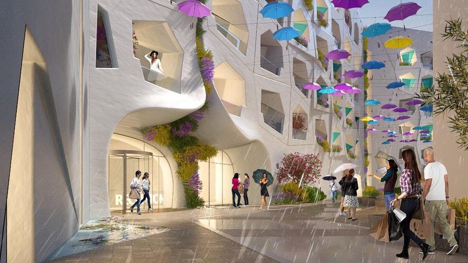 W Zjednoczonych Emiratach Arabskich popularne są zraszacze, które mają zapewnić efekt chłodzącej bryzy. Pojawiają się m.in. przy takich atrakcjach, jak ogrody zoologiczne czy parki rozrywki. Raining Street idzie jednak o krok dalej, bo pomaga w utrzymaniu temperatury na poziomie nie wyższym niż 27 st. C.