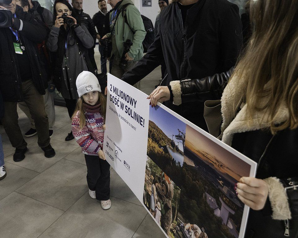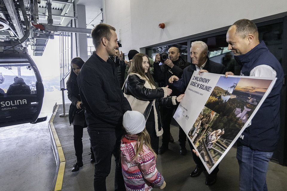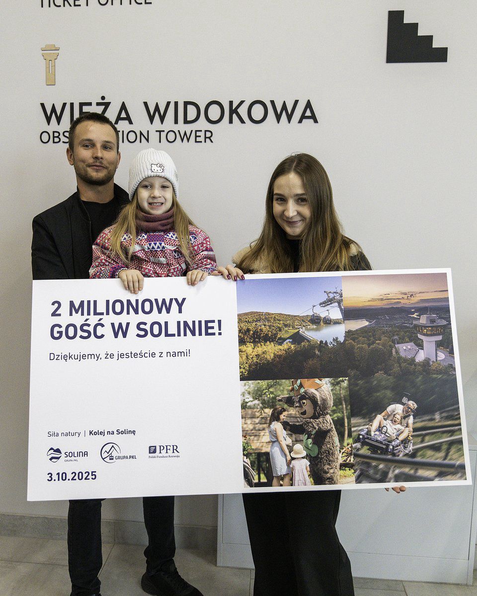 Dwumilionowy turysta nie przeszedł niezauważony! Rekordowy gość - a raczej mała Anielka z mamą i tatą - zostali uroczyście przywitani przez prezesa zarządu Grupy PKL Daniela Pitrusa, wójta gminy Solina oraz kierownika i zespół ośrodka, otrzymując specjalny upominek – voucher o wartości 1000 zł na pamiątkowe zakupy w sklepie solińskiego ośrodka, by mógł zabrać ze sobą nie tylko wspomnienia, ale i pamiątki przypominające o tej niezwykłej przygodzie i skorzystać z wyjątkowym przysmaków serwowanych w Karczmie Jawor przy górnej stacji kolei PKL Solina.