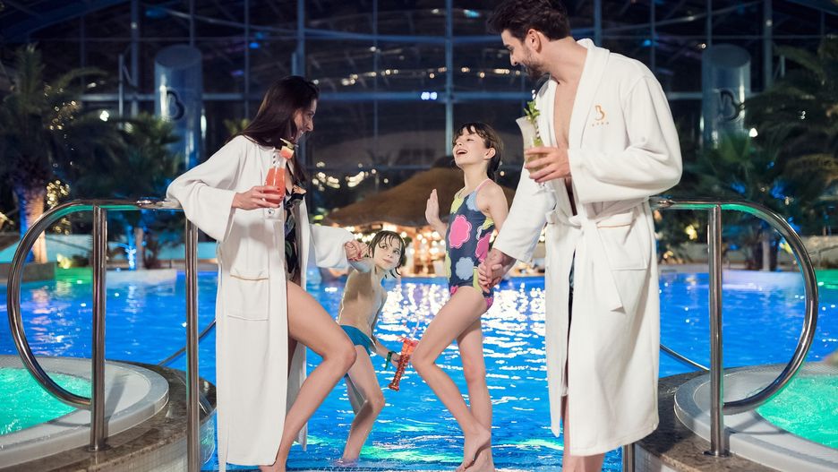 Miłośnicy wodnych atrakcji na pewno docenią nieograniczony dostęp do hotelowego aquaparku. Odwiedzając Baseny Tropikalne, można nie tylko odpocząć wśród imponującej roślinności, ale też skorzystać z bogatej strefy wodnej, w tym popływać pontonem po leniwej rzece, która okala cały aquapark czy zrelaksować się na licznych stanowiskach do masażu. Dodatkowo dzieci mają do dyspozycji wodny plac zabaw, basen z atrakcjami, w tym gejzerami oraz zjeżdżalnie o łącznej długości ponad 300 m. Możecie być pewni, że najmłodsi z wody nie będą wychodzić całymi godzinami.