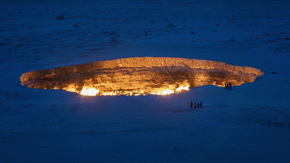 Wrota Piekieł znajdują się w pobliżu wioski Darwaza, w samym sercu pustyni Karakum. Krater ma ok. 60–70 m średnicy i blisko 30 m głębokości. Ogniste zapadlisko, widoczne z wielu kilometrów, stało się jedną z największych atrakcji turystycznych Turkmenistanu.