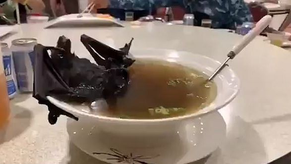 Kolejny film, który trafił do sieci, został opublikowany przez chińskiego blogera Chena Qiushi na Twitterze. Pokazuje gotowanego nietoperza umieszczonego w dużej misce zupy. Są też zdjęcia dzieci chrupiących skrzydełka.