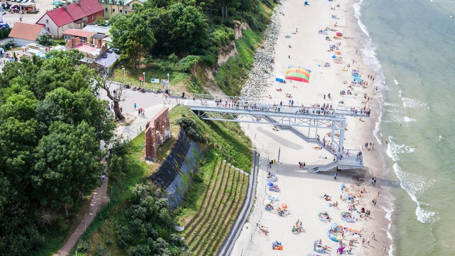 Na listę warto także wpisać Trzęsacz, który byłby jedną z wielu typowych miejscowości nadmorskich, gdyby nie jeden szczegół. Na klifie znajdują się ruiny gotyckiego kościoła, co wraz z położoną poniżej plażą tworzy wyjątkowo malowniczy obrazek, przyciągający turystów i fanów fotografii. Choć odcinek wybrzeża nie jest wyjątkowo szeroki, dzięki temu niezwykłemu elementowi plażę w Trzęsaczu można z pewnością uznać za jedną z najpiękniejszych w kraju.