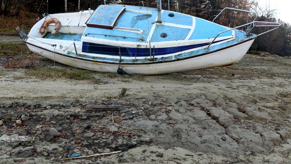 Z powodu niskiego poziomu wody część żaglówek jest na lądzie zamiast w wodzie.