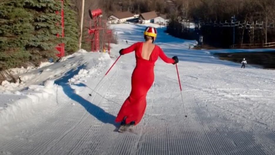 Bożena Budzyńska pozuje w czerwonej sukni i szpilkach na tle znanych atrakcji turystycznych, a jej zdjęcia robią furorę w internecie. Tym razem mieszkająca w Chicago Polka postanowiła w słynnej sukience zjechać na nartach.