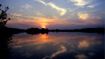 Wschód słońca nad jeziorem Dybrzk. Jezioro na szlaku Brdy.