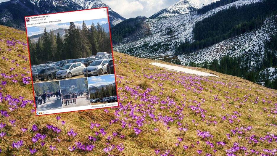 "Krokusowe oblężenie" napisano pod zdjęciami z 22 marca br., które przedstawiają zapełnione samochodami parkingi oraz pielgrzymki turystów, spacerujące szlakiem. Choć kwiatów jeszcze nie ma wyjątkowo wiele, liczne grupy już szukają oznak wiosny. "Byłam raz... Wystarczy... Krokusy piękne... Tłumy ludzi już nie", "W tych tłumach nie ma to takiego uroku", "Lepiej jechać w tygodniu" - narzekają komentujący.
