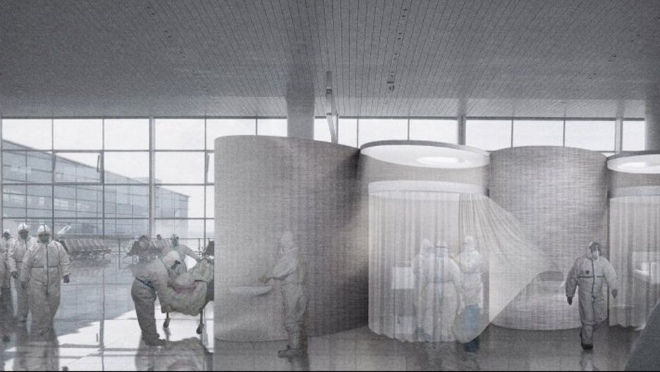 Według projektu architektów, miejsca siedzące przy bramkach można by było zastąpić okrągłymi modułowymi kabinami. W każdej z nich znalazłyby się: pojedyncze łóżko, stół, monitor szpitalny, a także umywalka dla pracowników medycznych.