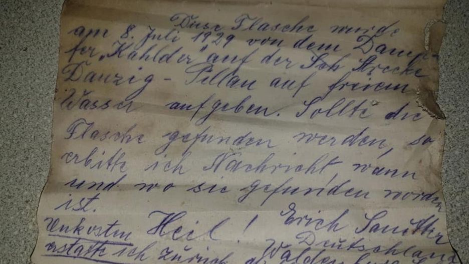 8 lipca 1929 r. Erich Sanitter wrzucił do wody wiadomość zamkniętą w butelce. Wyłowiono ją dopiero pod koniec 2019 r. Jeden z rybaków nalazł ją w sieci rybackiej i odłożył na półkę w domu. Zainteresowała się nią jego siostra.