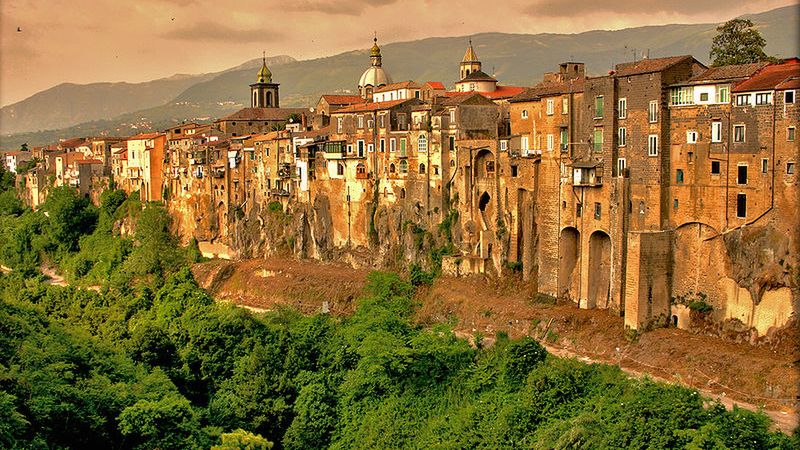 Nasze zestawienie rozpoczyna miejscowość Sant'Agata de Goti, położona we włoskiej Kampanii, niecałe 50 km od Neapolu. Rząd budynków wybudowano na skraju skalistego wzniesienia. Poniżej znajduje się wąwóz, którym płynie rzeka. Miasteczko pełne jest wąskich ulic i zabytkowych budynków. Jego nazwa pochodzi od rodu _ de Goth _, do którego te tereny należały w XIV wieku. Do największych atrakcji należy katedra, której historia sięga aż X wieku.