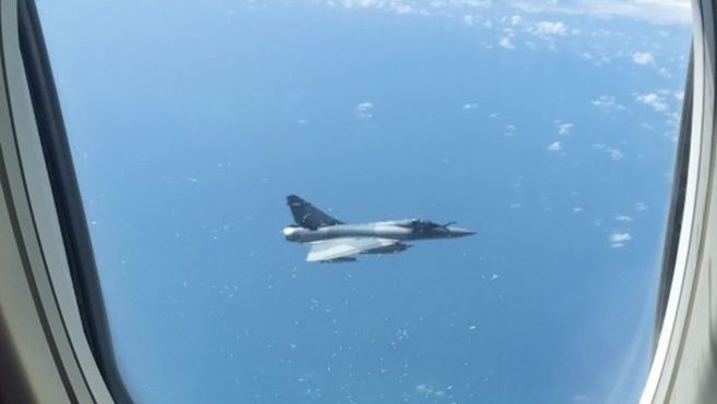 Chwile grozy przeżyli pasażerowie podróżujący z Hiszpanii do Wielkiej Brytanii. Gdy dostrzegli, że maszyna, którą lecą, ma "eskortę" w postaci francuskiego samolotu myśliwsko-szturmowego Mirage, nie było im do śmiechu.