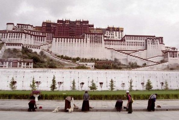 Moim oczom ukazał się widok, dla którego tu jechałam - Potala. Biel i czerwień tynków, od których odcinają się złote dachy świątyń.