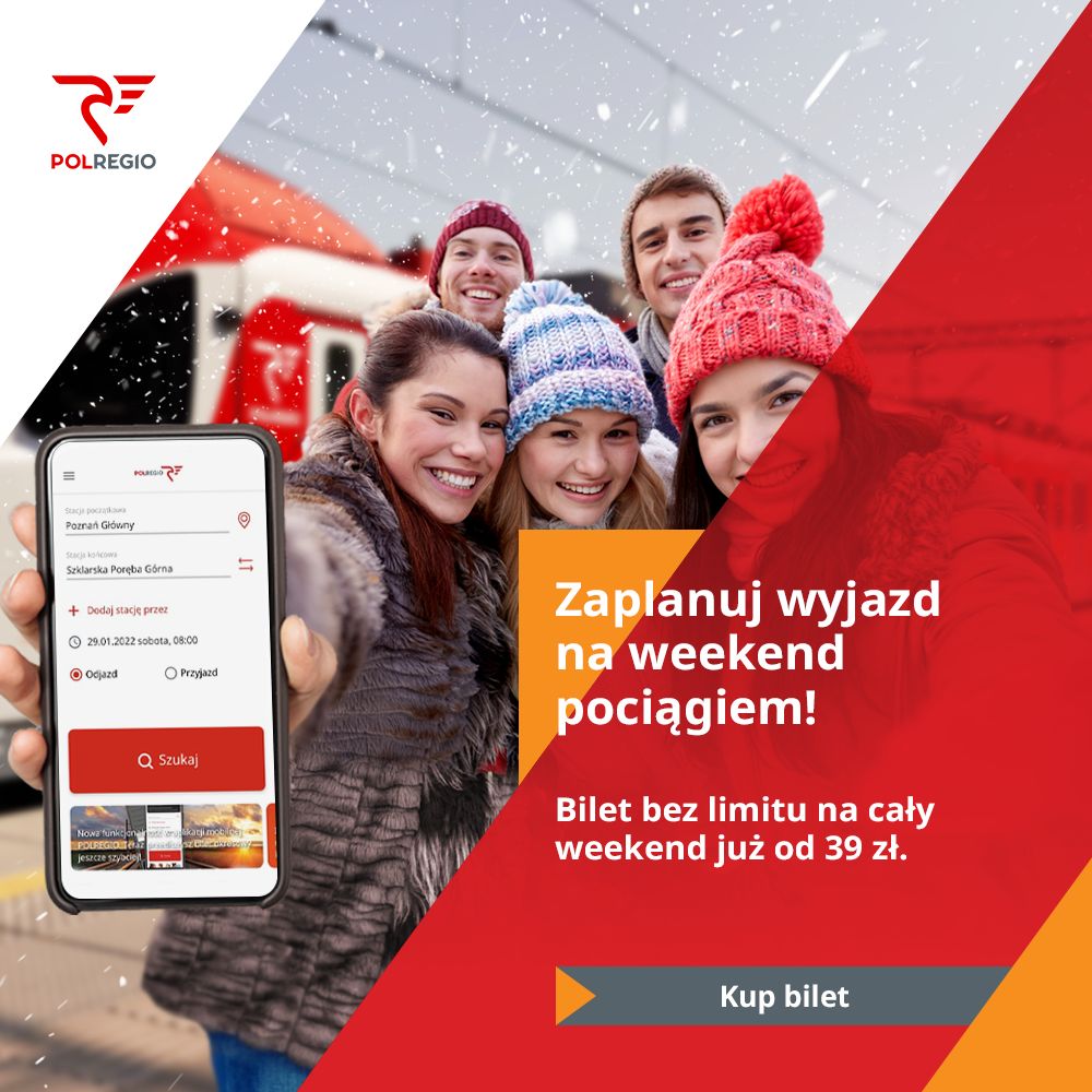 Kto powiedział, że udana podróż musi być daleka? Równie wiele satysfakcji przyniesie odkrywanie miejsc położonych o godzinę lub dwie jazdy od miasta, w którym mieszkasz. To, co lokalne często okazuje się równie fascynujące, co miejsca oddalone o setki lub tysiące kilometrów. Mikrowyprawy są w modzie! A najlepszym sposobem, by dotrzeć do celu, staje się pociąg. Pozwala pokonywać duże odległości w naprawdę krótkim czasie – i to bez stania w korkach i ciągłego skupiania się na drodze. W czasie podróży można poczytać książkę, obejrzeć odcinek serialu na komórce lub po prostu porozmawiać z towarzyszami. Jazda pociągiem jest również sposobem na ograniczanie kosztów. Bilet weekendowy za jedynie 39 zł pozwala na podróżowanie pociągami POLREGIO bez limitu od godziny 18:00 w piątek do godziny 6:00 w poniedziałek.