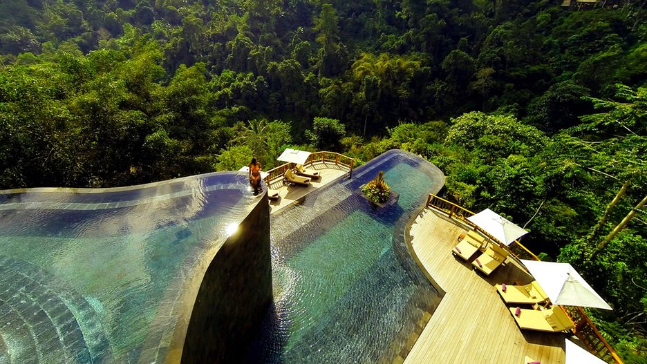 Bali *nazywane jest często *Klejnotem Tropików. Każdego roku przyjeżdżają tu miliony turystów i każdy z nich wraca zachwycony tym zakątkiem Indonezji. Z jednej strony piękne krajobrazy, wspaniałe plaże i fascynująca kultura, z drugiej doskonałe zaplecze dla turystów. Luksusowe hotele prześcigają się w nietypowych pomysłach, które mają przyciągnąć gości. Hotel Ubud Hanging Gardens, czyli Wiszące Ogrody zachwyca niezwykłym basenem. Pływanie w tym architektonicznym majstersztyku, z widokiem na tropikalny las może zachwycić każdego.