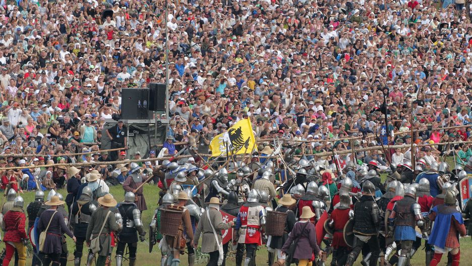 Na Polach Grunwaldzkich odbędzie się widowiskowa inscenizacja bitwy z 1410 r., w której wojska polsko-litewskie starły się z Zakonem Krzyżackim. W wydarzeniu weźmie udział 1,2 tys. rekonstruktorów z różnych bractw rycerskich.