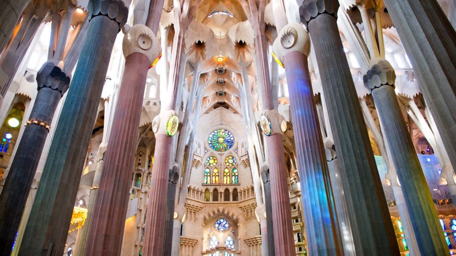 Wnętrza największych atrakcji - Sagrada Familia, Barcelona, Hiszpania