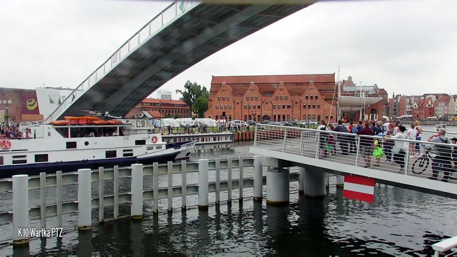 Kamery zainstalowane w Gdańsku pobliżu kładki na wyspę Ołowiankę zarejestrowały bardzo nierozsądny manewr kapitana statku Żeglugi Gdańskiej. Narażając życie pasażerów, kieruje jednostkę bezpośrednio na opadającą kładkę.