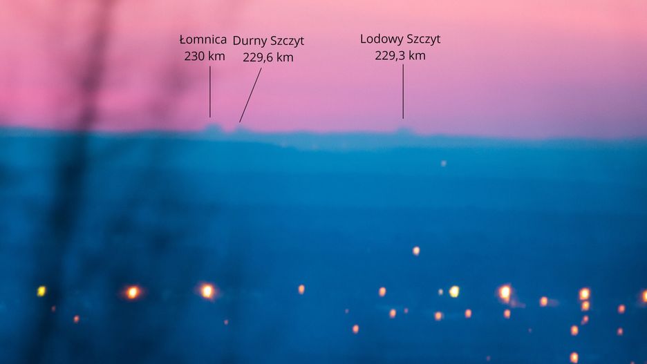 - Obserwacja była długo wyczekiwana wśród pasjonatów obserwacji i dalekich widoków - przyznaje Paweł Kłak, prowadzący serwis dalekiewidoki.pl. - Grzesiek Jagusiak na Górze Kamieńskiej fotografował już dekadę temu. Na taką fotografię czekał, podobnie jak inni, kilka lat. W międzyczasie Góra Kamieńska już tak zarosła, że istniała obawa, że ta obserwacja nigdy się nie uda - wyjaśnia. Choć wydawało się to niemożliwe, ekipa zrobiła sobie świetny noworoczny prezent i udowodniła, że jednak się da.