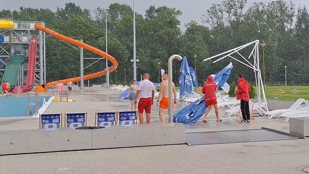 Koszmarne oberwanie chmury wystraszyło gości Parku Wodnego Dolinka w Elblągu. W niedzielę ok. godz. 14 niebo nagle zrobiło się czarne i natychmiast zaczęło lać. Wiatr przewracał parasole, a leżaki wpadały do wody. Razem z deszczem padał również grad. Ludzie uciekali w popłochu i chowali się w przebieralniach. Dzieci były wystraszone, niektóre nawet płakały, bo ulewa przyszła tak nagle, że nie miały pojęcia, co się dzieje. Po ok. 20 minutach deszcz ustał, a goście natychmiast zaczęli opuszczać obiekt - wyjazd się zakorkował.