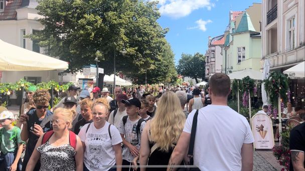 Wakacje w pełni, więc Sopot pęka w szwach nie tylko w weekendy. Mieszkańcy mówią o prawdziwym oblężeniu. Tłumy widać już na dworcu, a po słynnym Monciaku płynie rzeka ludzi. Ogródki restauracji i kawiarni są pełne przez cały dzień. W słoneczne dni ustawia się także spora kolejka do kas na molo. Jest też bardzo dużo zagranicznych turystów - słychać języki zarówno z Europy, jak i np. z Azji.