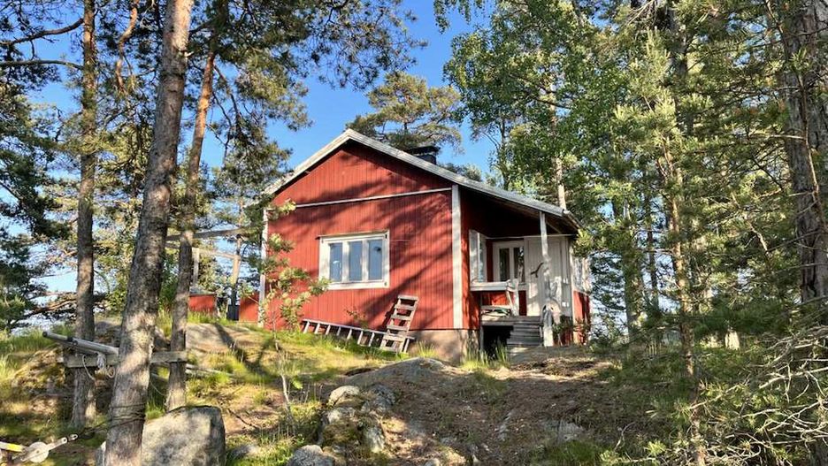 Na prywatną wyspę na Zatoce Botnickiej docieram pociągiem, samochodem, promem, a wreszcie łodzią wiosłową. Skalisty skrawek ziemi wystający z wody jest maleńki, można go obejść w pięć minut i opłynąć w kwadrans. To wystarczy, by pomieścić dwa domki - czerwony dla gości oraz mniejszy, szary, mieszczący saunę.