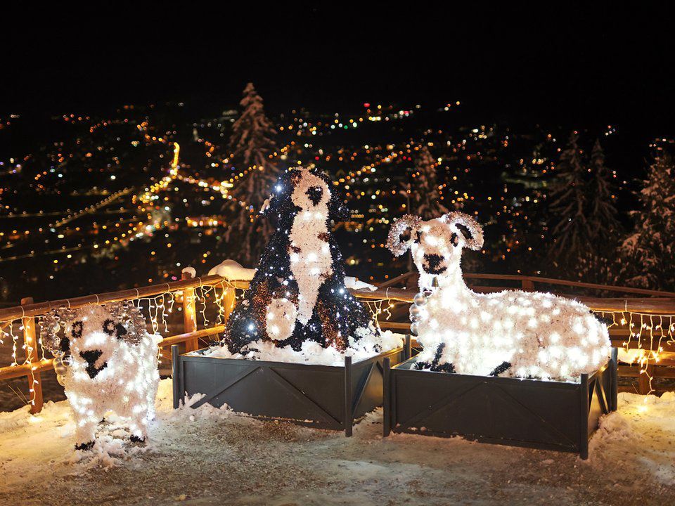 Wysiadając z wagonika przejdziemy przez baśniowy i połyskujący tunel, a za nim czeka na nas oszałamiające i iskrzące pole krokusów. Lśniące rzeźby owiec w towarzystwie psa, które zanurzają nas w świat podhalańskiego klimatu i pasterskich tradycji. Migoczące skrzypce oraz saksofon robią wrażenie, a przy Cafe Gubałówka znajduje się także iskrzący czajnik z filiżanką. Szczyty Tatr dodatkowo możemy podziwiać na multimedialnej i podświetlonej panoramie.