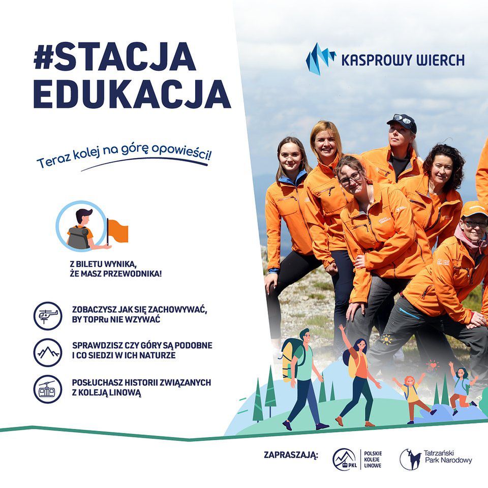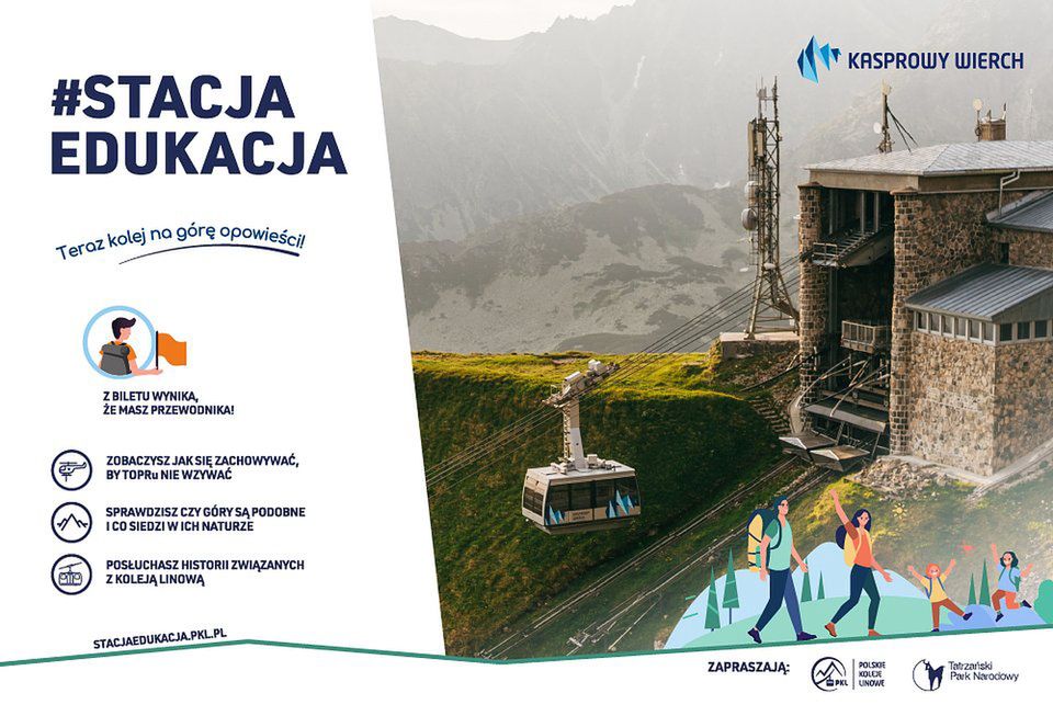 Turyści odwiedzjący Kasprowy Wierch i korzystający z kolei linowej PKL na Kasprowy Wierch, w cenie biletu i bez dodatkowych opłat, mogą wziąć udział w akcji edukacyjnej. #StacjaEdukacja to spotkania z przewodnikami, którzy podczas prelekcji wprowadzają turystów w świat tatrzańskiej przyrody, górskiej topografii czy historii związanych z najstarszą koleją linową w Polsce.
