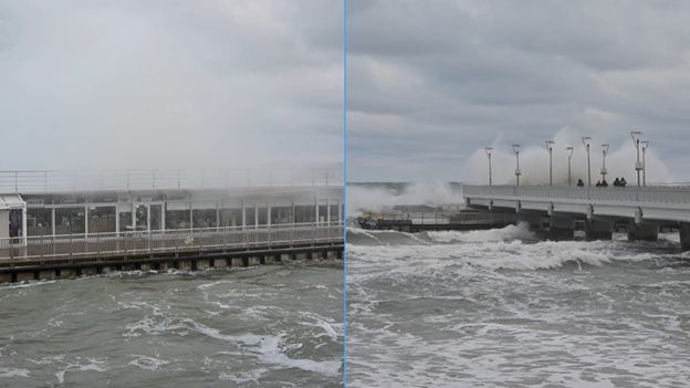 Na nagraniach udostępnionych w niedzielę 11 stycznia br. przez Polską Agencję Prasową widać ogromne fale rozbijające się o molo w Kołobrzegu. Spowodował je silny północny wiatr osiągający 80 km/h. Ze względów bezpieczeństwa podjęto decyzję o częściowym zamknięciu tamtejszego mola, które jest jedną z największych turystycznych atrakcji miasta.