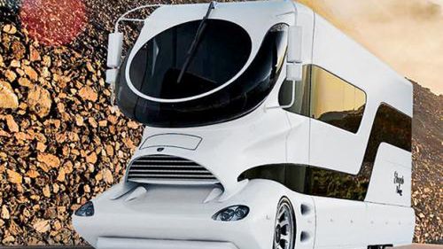 Wewnątrz znajduje się salon z barem, sypialnia z 40-calowym telewizorem, łazienka, kominek oraz drugi w pełni wyposażony bar na wysuwanym na dach tarasie. Wysunąć można także boki kampera, powiększając tym samym powierzchnię do 30 m2.