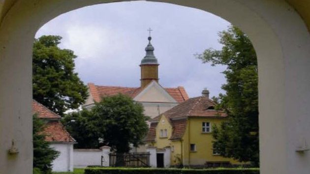 Dach zwieńczony jest smukłą drewnianą sygnaturką z cebulastym hełmem. W kościele znajduje się późnobarokowy architektoniczny murowany ołtarz główny. Przy wejściu stoi drewniana niska XIX-wieczna dzwonnica. Pomiędzy pałacem a kościołem biegnie Aleja Jabłonowskich, w kierunku leżącej na północ wsi Witkówki. Aleja obsadzona jest 148 lipami drobno- i szerokolistnymi. Niektóre drzewa mają ponad 4 m obwodu. Aleja jest pomnikiem przyrody. Jej długość wynosi ok. 1,2 km.