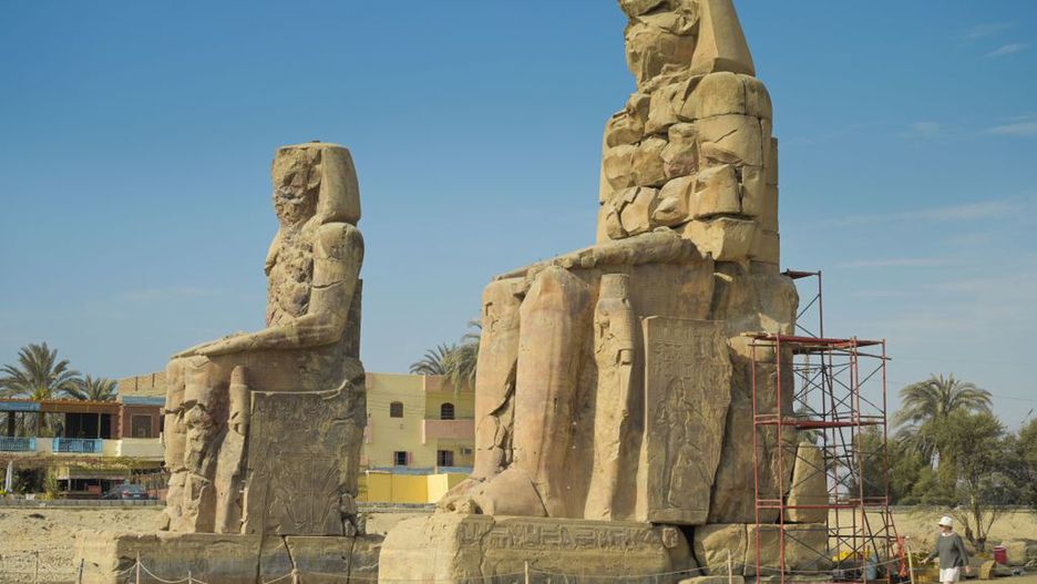 Pierwotnie Kolosy Memnona, mające ponad 3,4 tys. lat, strzegły wejścia do świątyni grobowej jednego z najpotężniejszych faraonów starożytnego Egiptu. Niestety, ok. 1200 r. p.n.e., trzęsienie ziemi zniszczyło imponujące rzeźby. Fragmenty kolosów przez długi czas były rozproszone, a niektóre z nich przeniesione do innych lokalizacji. Dopiero pod koniec lat 90. XX w. rozpoczęto projekt ich kompleksowej renowacji.