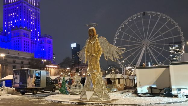 Powoli pojawiają się także małe karuzele i świetlne dekoracje, wśród których wyróżnia się wielki anioł. Nad całością góruje ogromne koło widokowe. Zaciekawieni warszawiacy zaglądają za ogrodzenia budowanego miasteczka świątecznego, wypatrując pierwszych atrakcji, jednak jak na razie plac Defilad jest jeszcze w dużej mierze placem budowy.