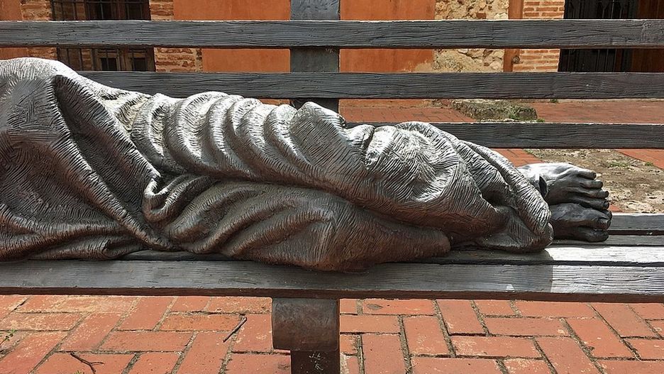 Od 2013 r. kanadyjski rzeźbiarz Timothy Schmalz w miastach na całym świecie umieszcza szczególną rzeźbę, przedstawiającą bezdomnego, śpiącego na ławce człowieka. Rzeźba z brązu o naturalnej wielkości wydaje się mieć anonimową twarz, a dłonie spoczywają ukryte pod kocem. Jednak rozdarte rany na stopach sugerują, że ową postacią jest Jezus.