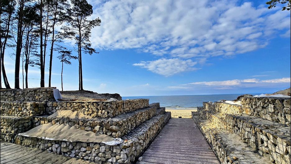- Jestem w temacie. Od lat pracuję przy tego typu konstrukcjach, mówiąc wprost, w drewnie robię. W takim miejscu drewno nie ma żadnych szans. Przy samej plaży panuje ogromna wilgoć, zimą czy jesienią woda dochodzi do konstrukcji schodów a w powietrzu ciągle unosi się słona wodna mgiełka. Drewno w takich warunkach zaczyna się rozpadać po kilku miesiącach, więc trzeba wybierać inne materiały, żeby za chwilę nie robić kolejnego remontu. Chyba, że to będzie bardzo drogie, sezonowane i specjalnie przygotowane drewno. No ale to są ogromne koszty a i tak będzie mniej trwałe od kompozytu.– tłumaczy pan Robert, właściciel firmy produkującej drewniane place zabaw, który pije gorącą herbatę w kawiarni z widokiem na stegieńską dalbę.