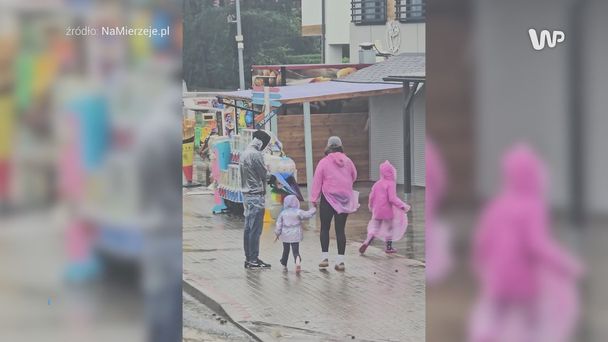 Turyści byli załamani pogodą. Niewielu zdecydowało się na wyjście z kwater. - Za to jest ciepło, więc można założyć kalosze i pójść na spacer pustą plażą - żartował autor nagrania.