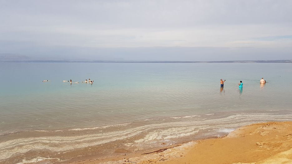 Znajdziemy na niej przebieralnie, tak potrzebne prysznice, baseny, leżaki. A schodząc w dół dotrzemy do emanującego spokojem słonego jeziora, z taflą wody gładką jak stół, nieco oleistą. Jezioro jest wyjątkowe - leży między klifami i górami w najniższym punkcie globu - depresji - na poziomie 430,5 m p.p.m. Jest tak zasolone (średnio 26 proc.) że nie ma w nim praktycznie żadnego życia.