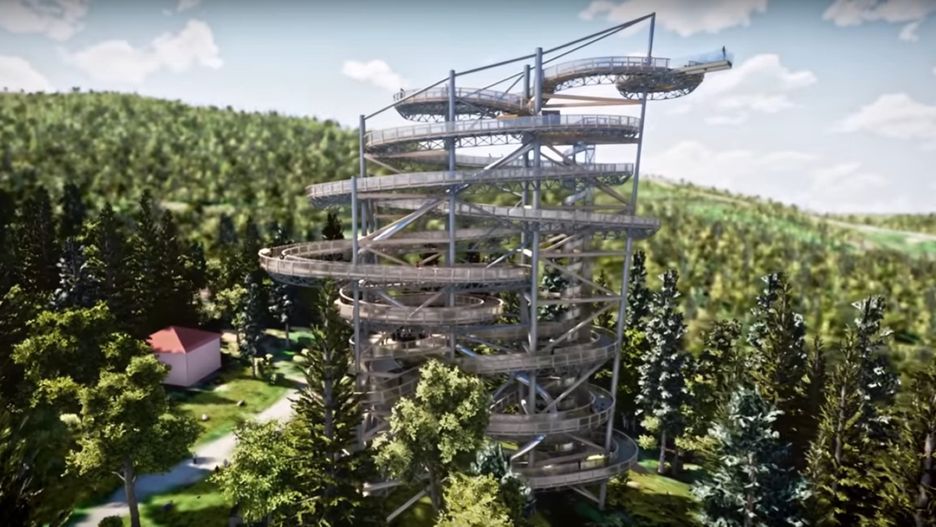 Na żądnych wrażeń czekać też będzie ponad 100-metrowa zjeżdżalnia o 29 stopniach nachylenia. Będzie nią można zjechać na dolny poziom konstrukcji. Obiekt będzie oświetlony i dostępny dla turystów także po zmroku.