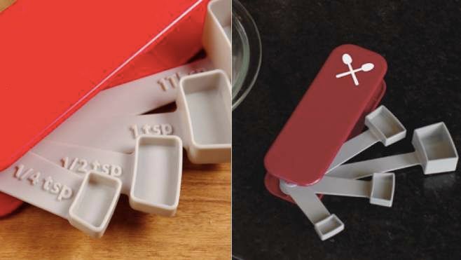 Kto kiedykolwiek coś gotował lub piekł, wie, jak ważne w kuchni są proporcje. Aby potrawa wyszła jak należy, trzeba skrupulatnie odmierzać składniki. Niezbędna przy tym jest specjalna kuchenna miarka. Swiss Measuring Spoons wygląda jak szwajcarski scyzoryk, ale zamiast ostrzy kryje w sobie łyżeczki o różnej pojemności. Prosty gadżet, który na pewno ucieszy osoby lubiące pichcić.
