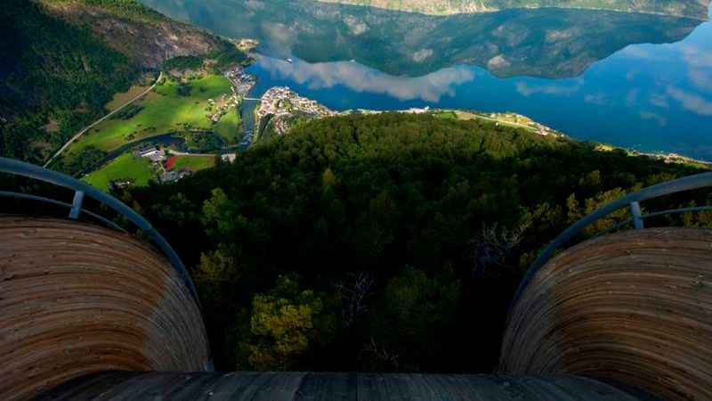 Portal amerykańskiej sieci telewizyjnej CNN zamieścił ranking 13 najpiękniejszych platform widokowych świata. Jedynym reprezentantem północnej Europy okazała się platforma Stegastein nad Aurlandsfjordem w Krainie Fiordów Norwegii. Uznanie ekspertów wzbudził nowoczesny projekt, wspaniałe widoki i wysokość platformy ponad lustrem wody - 650 metrów! Platforma Stegastein znajduje się przy tzw. Śnieżnej Drodze (Snřvegen lub Aurlandsvegen) łączącej Aurland z Lćrdal i jest dostępna przez cały rok.