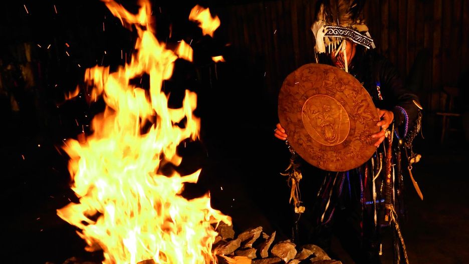 Pięciolatek, wraz z ojcem niosąc na tacy specjalnie przygotowane ofiarne ciastka, obchodzi ognisko, po czym przy wtórze szamańskiego bębna wrzuca zawartość tacy do ognia, który według tradycji jest pośrednikiem między światem żywych a światem umarłych.