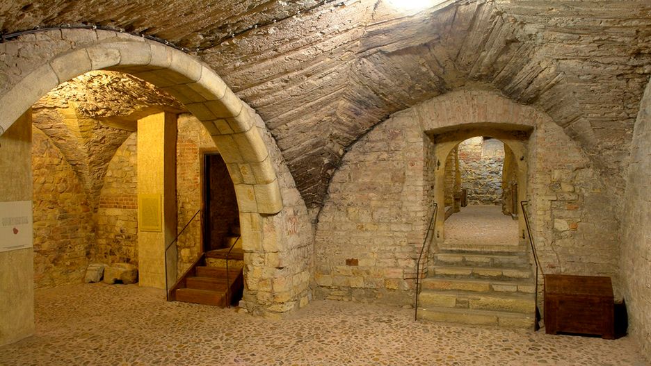 Najstarszą częścią podziemi Starego Miasta jest sala romańska z drugiej połowy XII wieku, zachowały sie także fundamenty o sto lat młodszej wieży. Zwiedzić możemy również dawne więzienie mieszczące się w podziemiach.