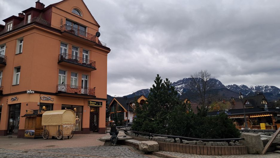Nie miałam nigdy wcześniej okazji zobaczyć, jak wygląda centrum Zakopanego o godz. 7:00 w sobotę, poza sezonem. Gdy dotarłam na Krupówki, zastałam prawdziwe pustki. Dzięki temu mogłam pierwszy raz na spokojnie obejrzeć z zewnątrz budynki i rzeźby. Zamknięte budki z oscypkami czy kolorowymi pamiątkami to nietypowy widok, który można zastać jedynie wczesnym rankiem lub nocą.