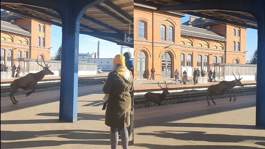 Podróżni czekający na pociąg na dworcu w Jarocinie przeżyli niemałe zaskoczenie, gdy na peron wbiegły jelenie. Zwierzęta pokonały tory w błyskawicznym tempie i dostały się na drugą stronę stacji kolejowej. Do sieci trafiło nagranie z niecodziennej sytuacji.