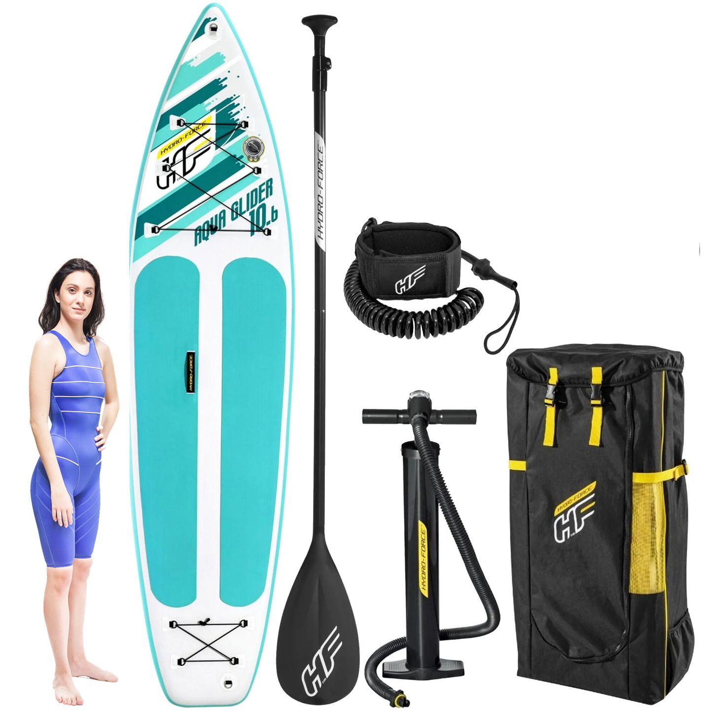 Prezentowana deska ma długość 320 centymetrów. Przód SUP jest mocno zaostrzony. Na dwóch końcach deski umieszczono niewielki bagażnik na niewielkie przedmioty – np. wodoodporna torbę, w której schowasz telefon lub portfel. W zestawie znajduje się deska, wiosło, pompka nożna, opaska na kostkę i wygodny plecak transportowy. Materiał drop stitch po wewnętrznej stronie sprawia, że model jest niezwykle sztywny i trwały. Jednocześnie deska jest lekka, przenośna i łatwa do przechowywania. Materiał powierzchni jest odporny na żywioły i przebicie, zapewniając przyjemny dzień podczas odkrywania wody. Deska kosztuje niewiele, bo niespełna 1200 złotych.