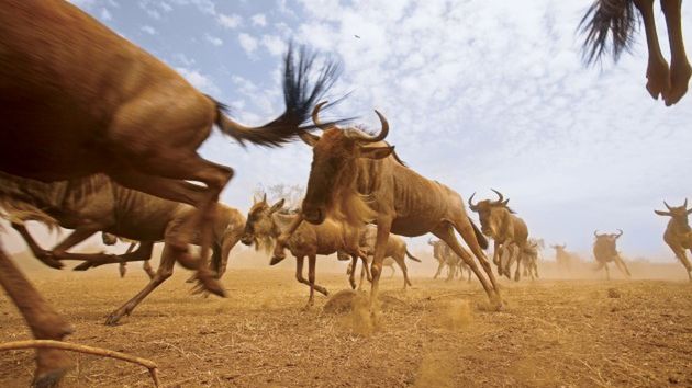 Opowieść o wędrówce gnu jest powszechnie znana, lecz nigdy dotąd widzowie nie mieli okazji, by ujrzeć ją w ten sposób. Korzystając z najnowszej technologii polegającej na zamocowaniu na śmigłowcu kamery o wysokiej rozdzielczości i systemów stabilizacji obrazu oraz możliwości wykonywania ultraszybkich zdjęć, pozwalających na uzyskanie niezwykle ostrych obrazów w zwolnionym tempie, ekipa National Geographic sfilmowała zmagania gnu z żywiołami, drapieżnikami i czasem. Nowonarodzone gnu już od pierwszych chwil swego życia muszą być w stanie wędrować. W przeciwnym razie grozi im pożarcie. Ich młode, zwinne nogi muszą pokonać całą trasę migracji poprzez Kenię i Tanzanię oraz pełną krokodyli rzekę Mara, gdzie widzimy i słyszymy jak bezradna samica gnu, która przeprawiła się bezpiecznie na drugi brzeg, rykiem nawołuje jedno ze swych młodych. Młode odpowiada, zaskakująco dzielnie walcząc o życie, nim zginie wciągnięte pod wodę przez krokodyla.